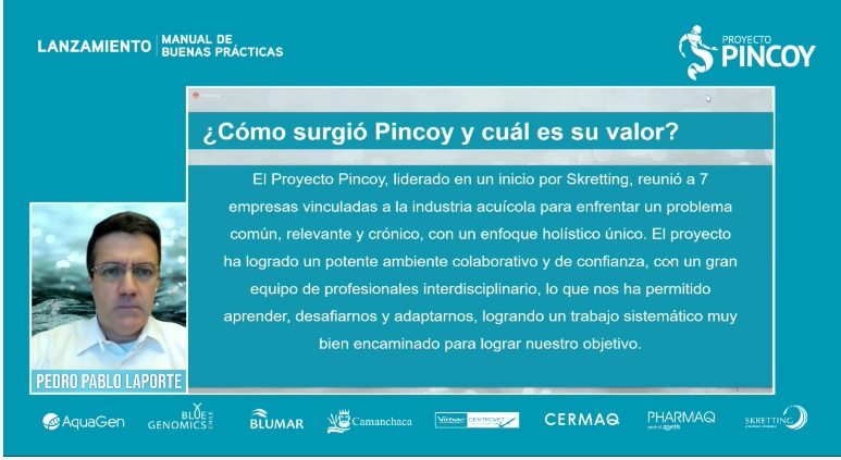 “El manual de buenas prácticas ha sido un gran esfuerzo colaborativo para poner a disposición de la industria la experiencia y know-how de un gran grupo de profesionales de la más alta calidad pertenecientes a las 7 empresas que conforman Pincoy. Este manual estará al alcance de toda la industria del salmón y esperamos sirva como una guía para instituciones educativas, de investigación y público en general, con interés en el desarrollo de salmonicultura de una forma responsable y sostenible”, señaló Alexander Jaramillo , Coordinador de Proyecto Pincoy.